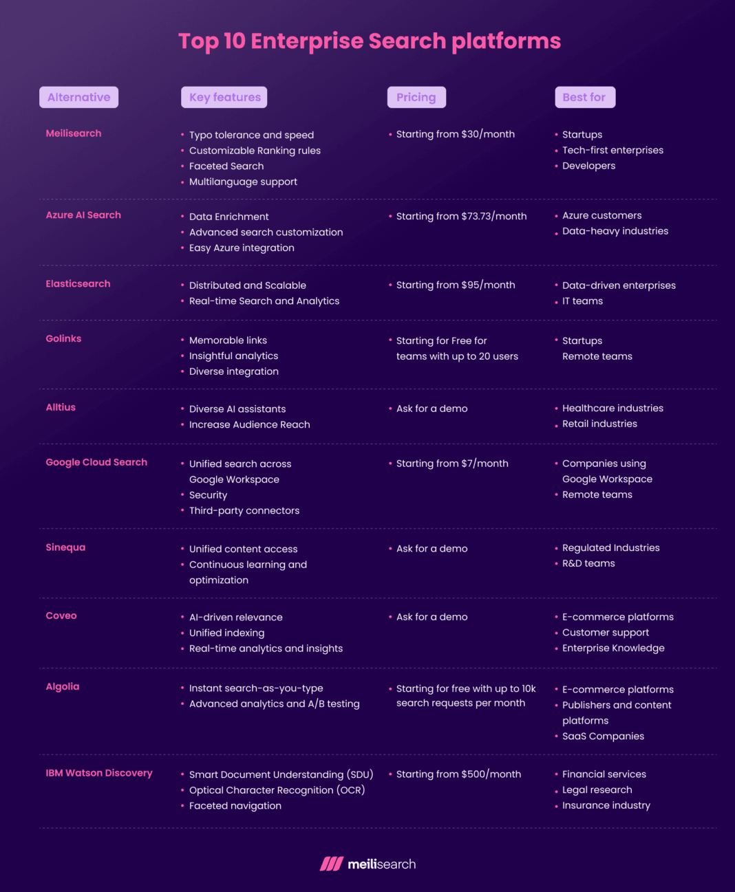 **Main Competitors/Alternatives:** Glean, Coveo, Elastic, Microsoft 365 Copilot, Google Cloud Search