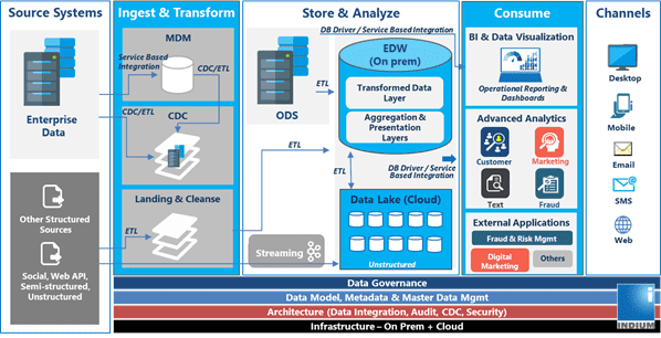 • Distributed Data Processing: Technologies like Apache Spark, Hadoop, or cloud-native distributed processing services enable large-scale data ingestion, transformation, and analysis across geographically dispersed or hybrid data stores, leveraging the strengths of both on-prem compute and cloud scalability.