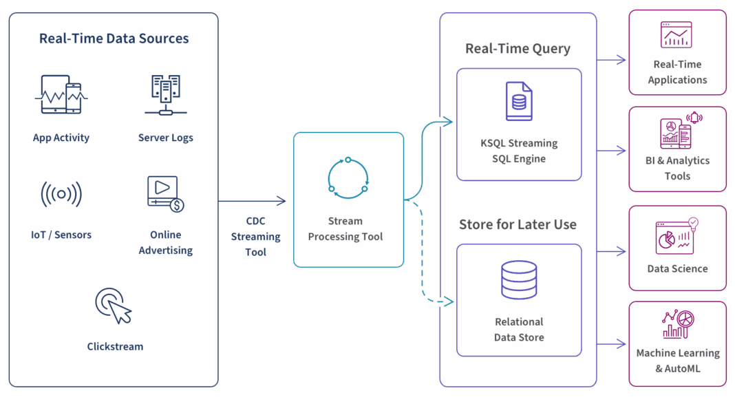 - Use Cases: Fraud detection, real-time personalization, IoT monitoring and control, algorithmic trading, dynamic pricing, supply chain optimization, online anomaly detection, and real-time customer engagement.